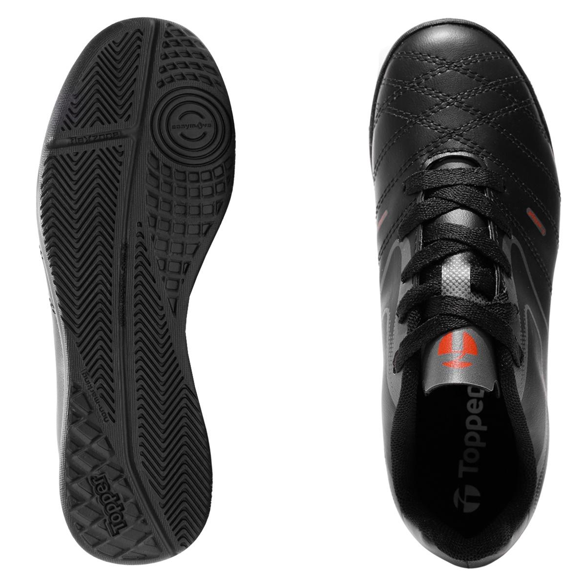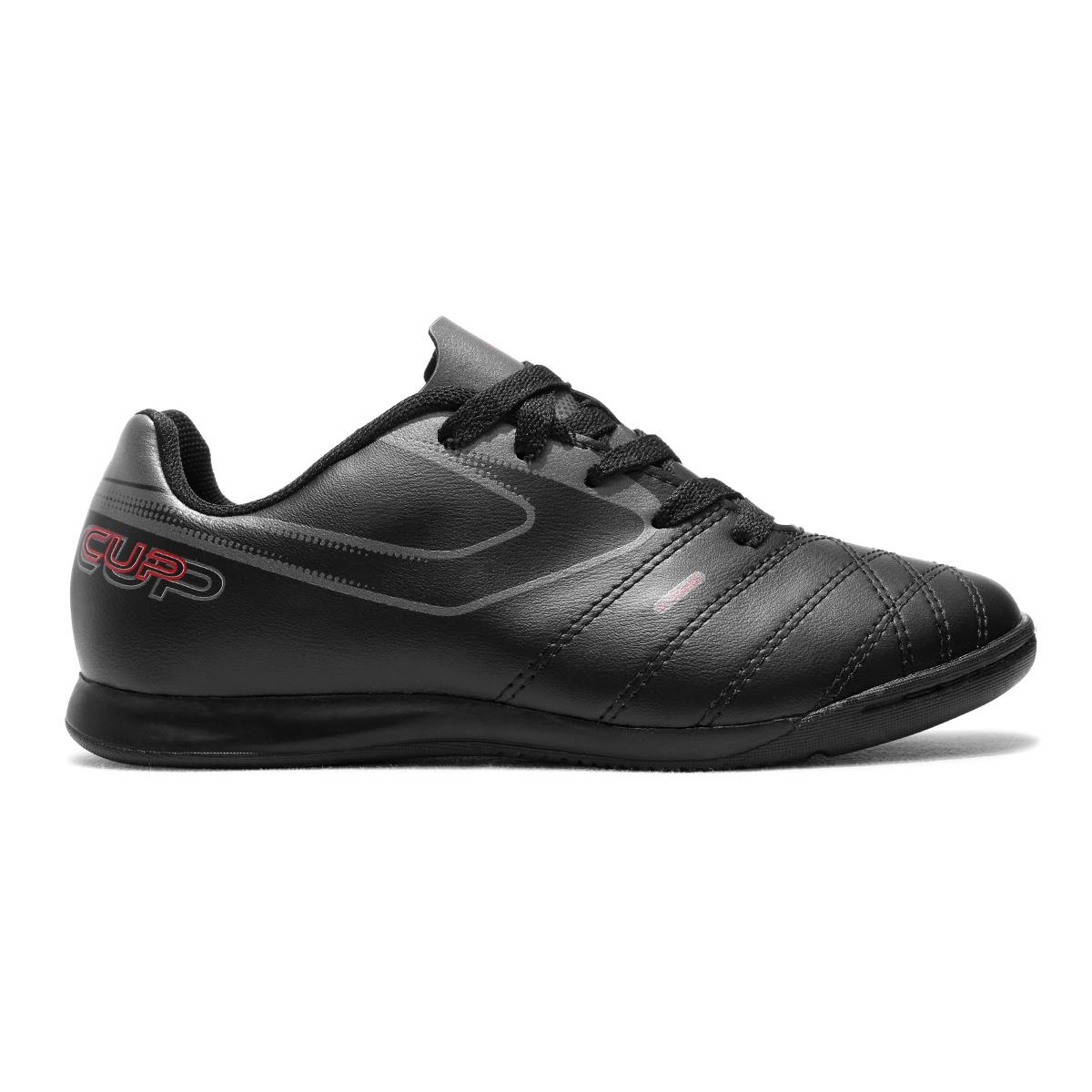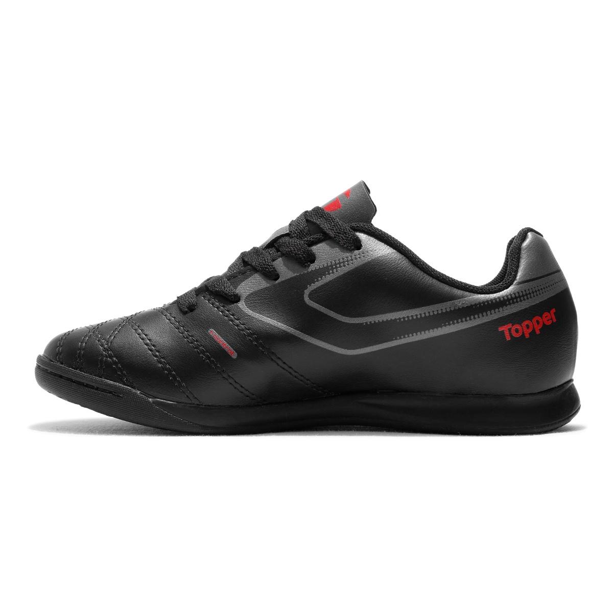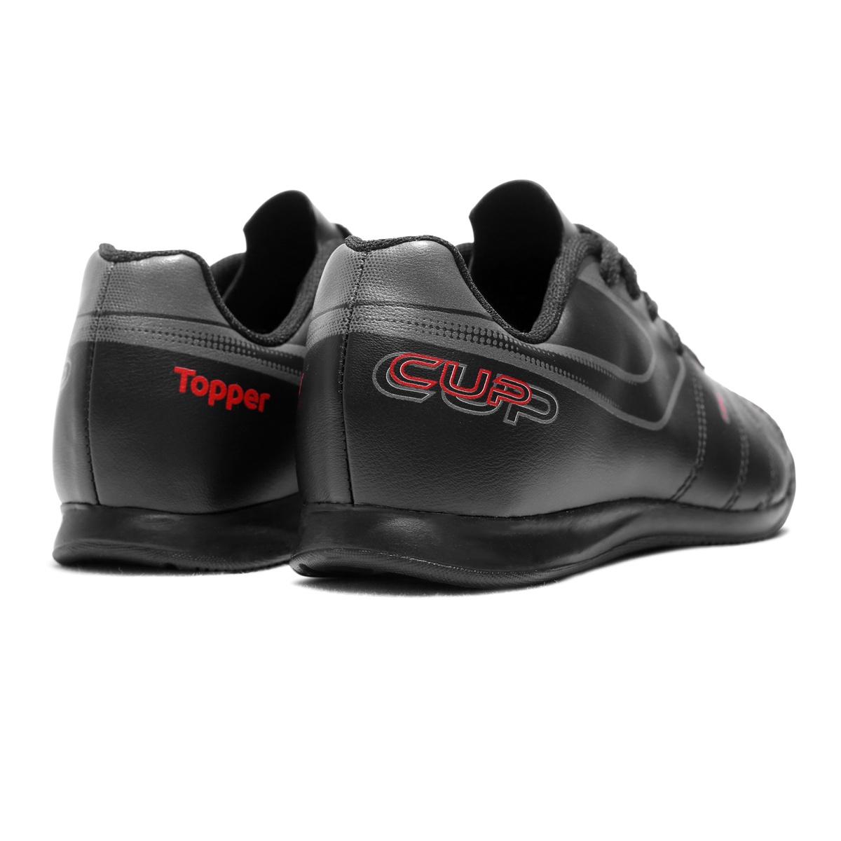 Chuteira Futsal Topper Cup 8 Juvenil Futebol de Salão Preto / Vermelho