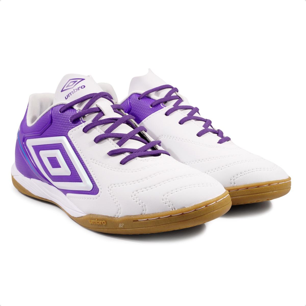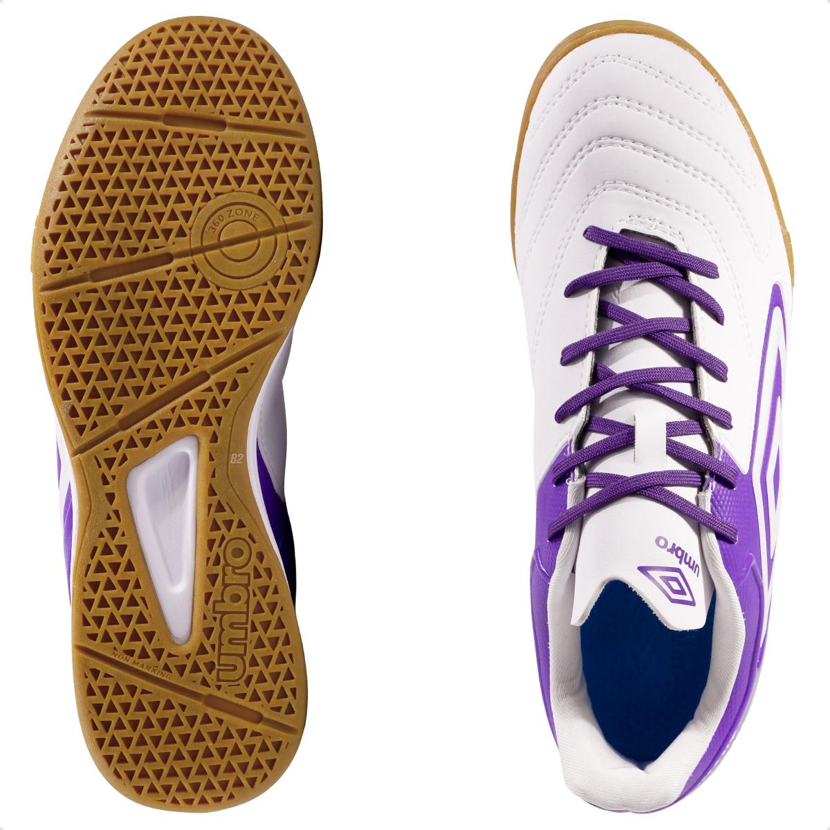 Chuteira Futsal Umbro Adamant Master Class Club Masculina Branco / Roxo