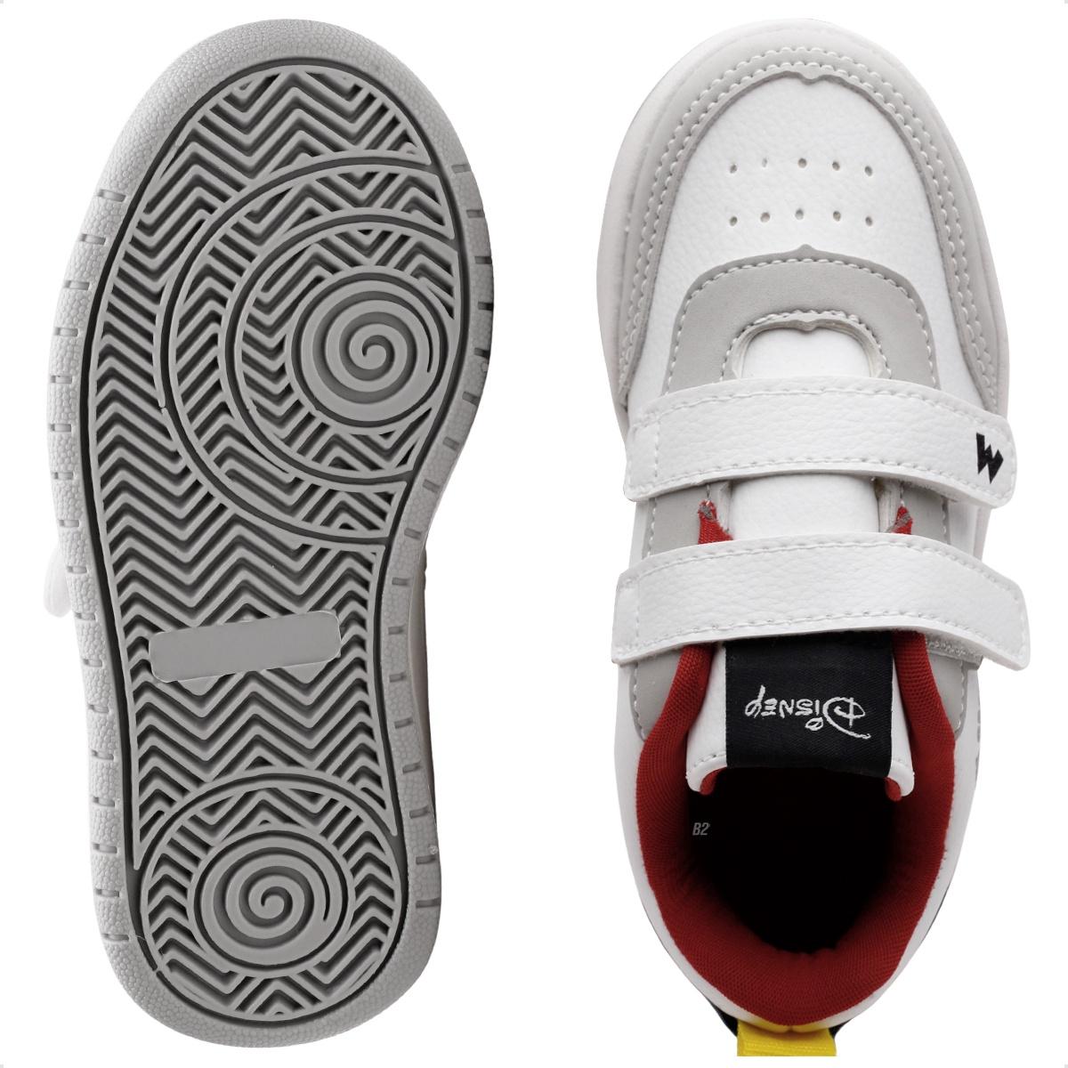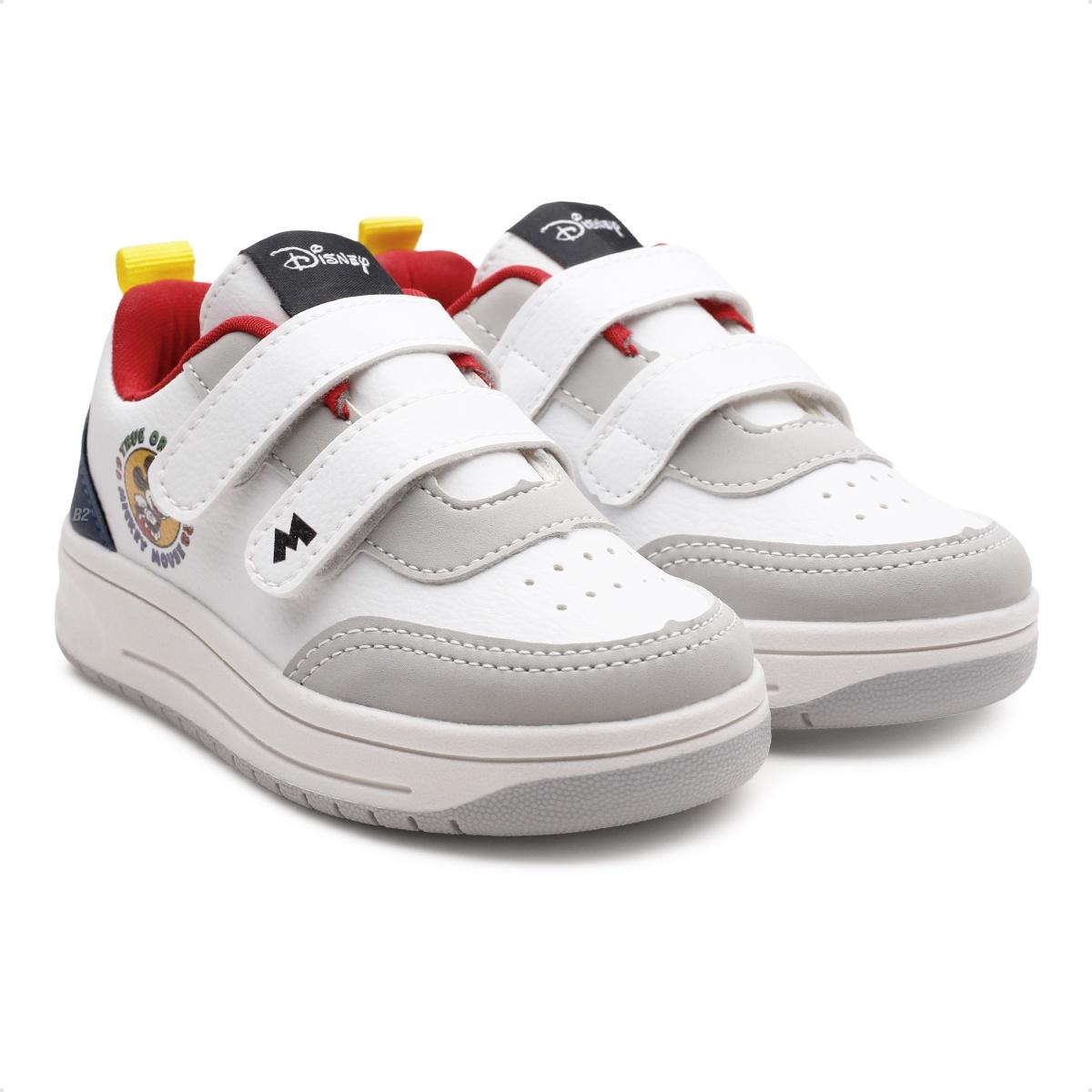 Tênis Disney Mickey Infantil Sem Cadarço Branco / Cinza