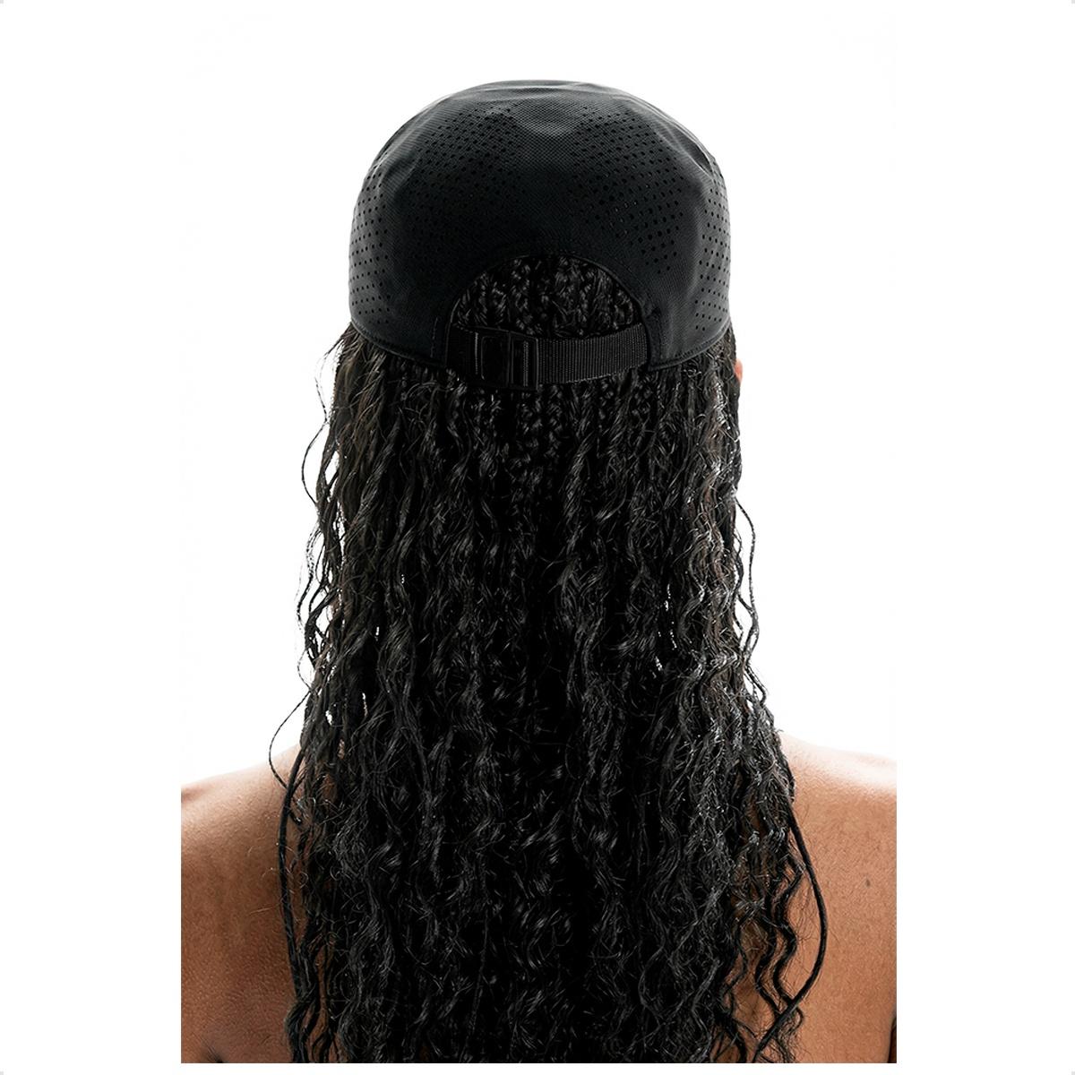 A aba curva protege contra o sol sem comprometer o campo de visão durante a atividade.