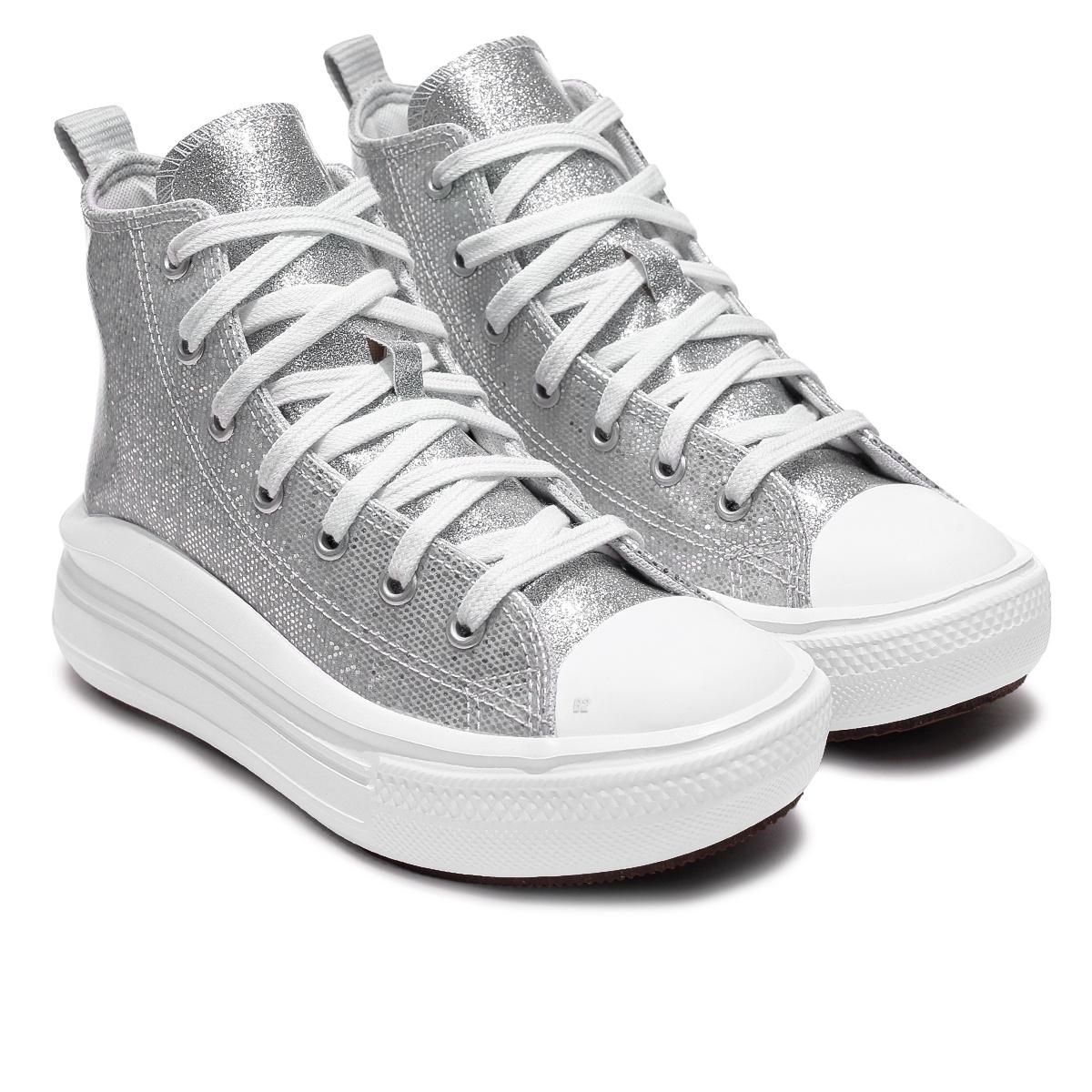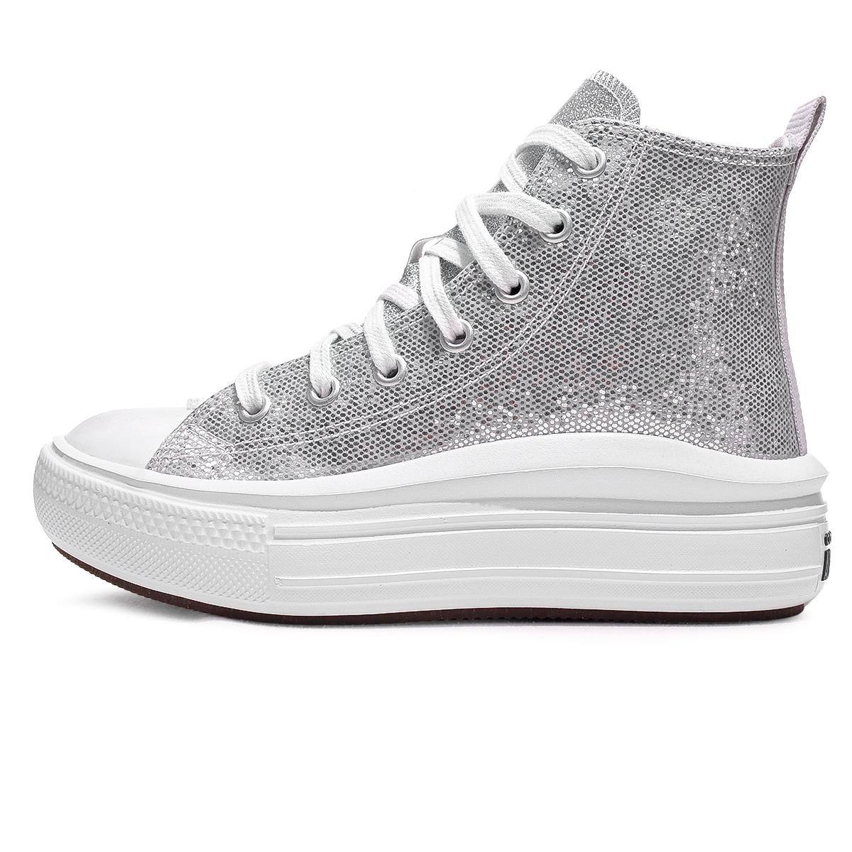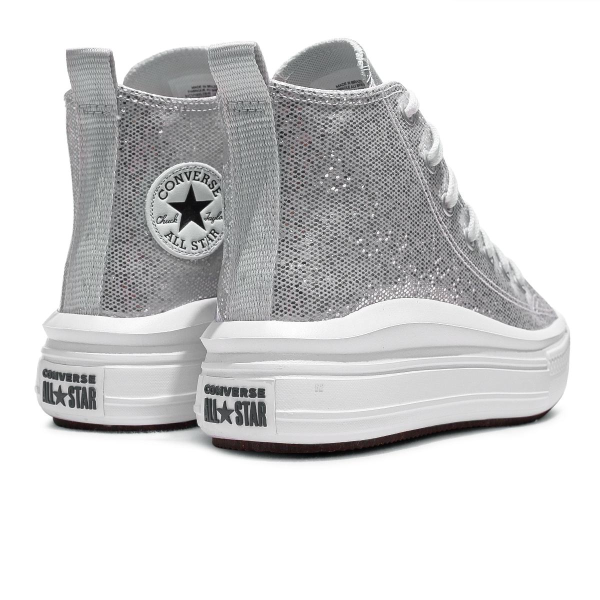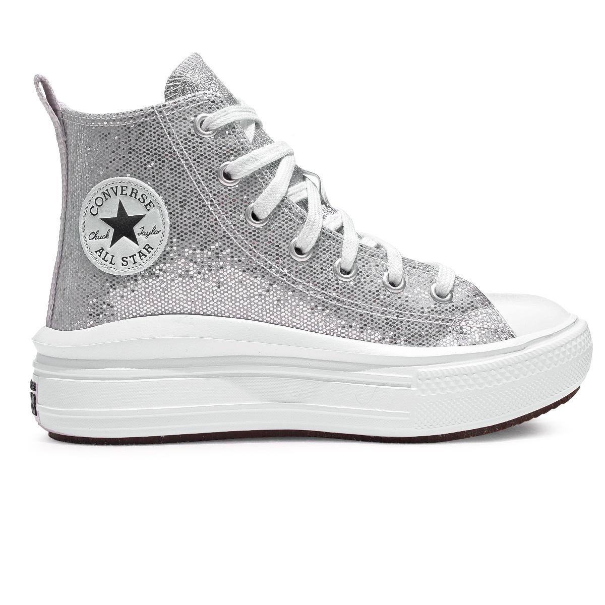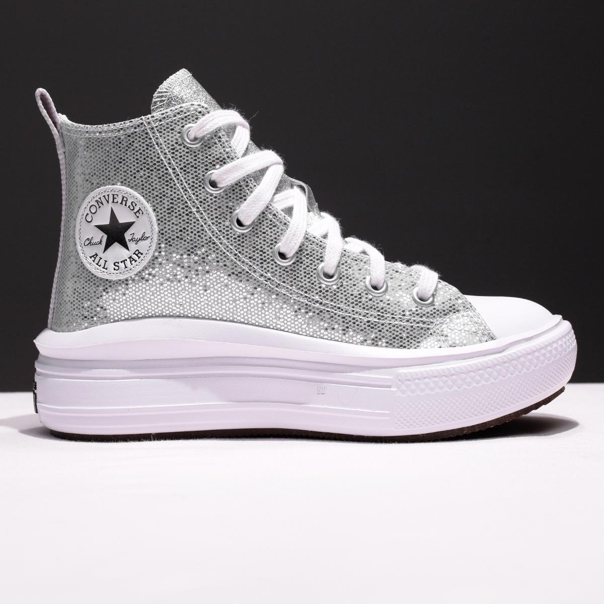 Tênis Converse Chuck Taylor All Star Move Holiday Disco Cano Alto Juvenil Prata / Branco