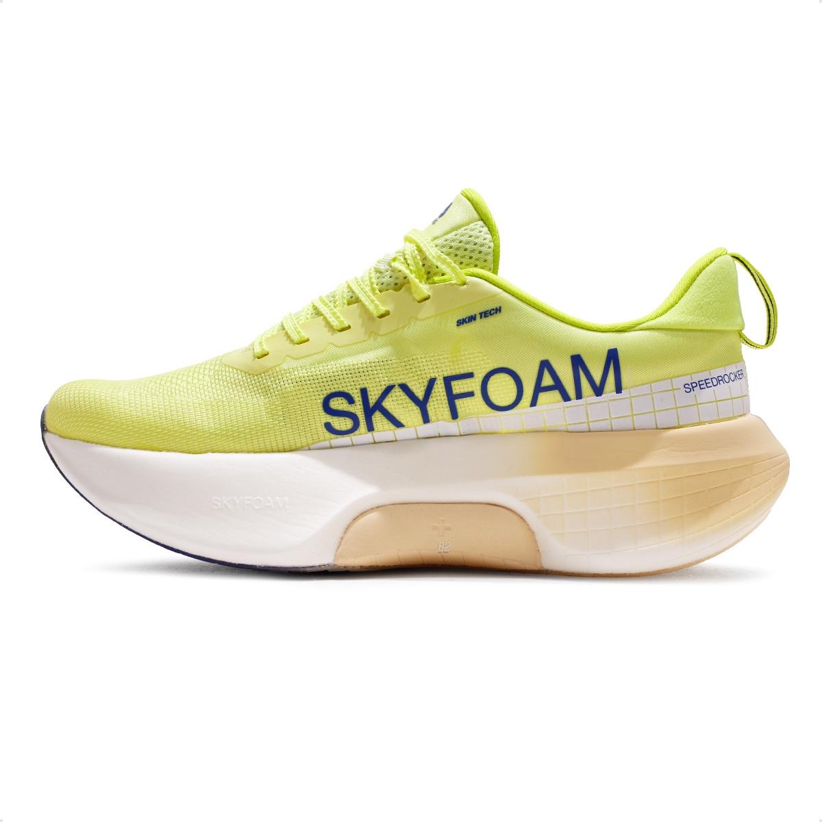 A tecnologia SKYFOAM garante amortecimento responsivo com excelente absorção de impacto, promovendo conforto contínuo durante toda a corrida.