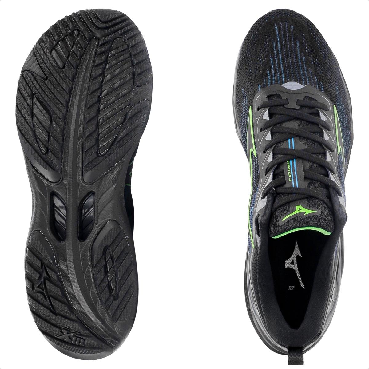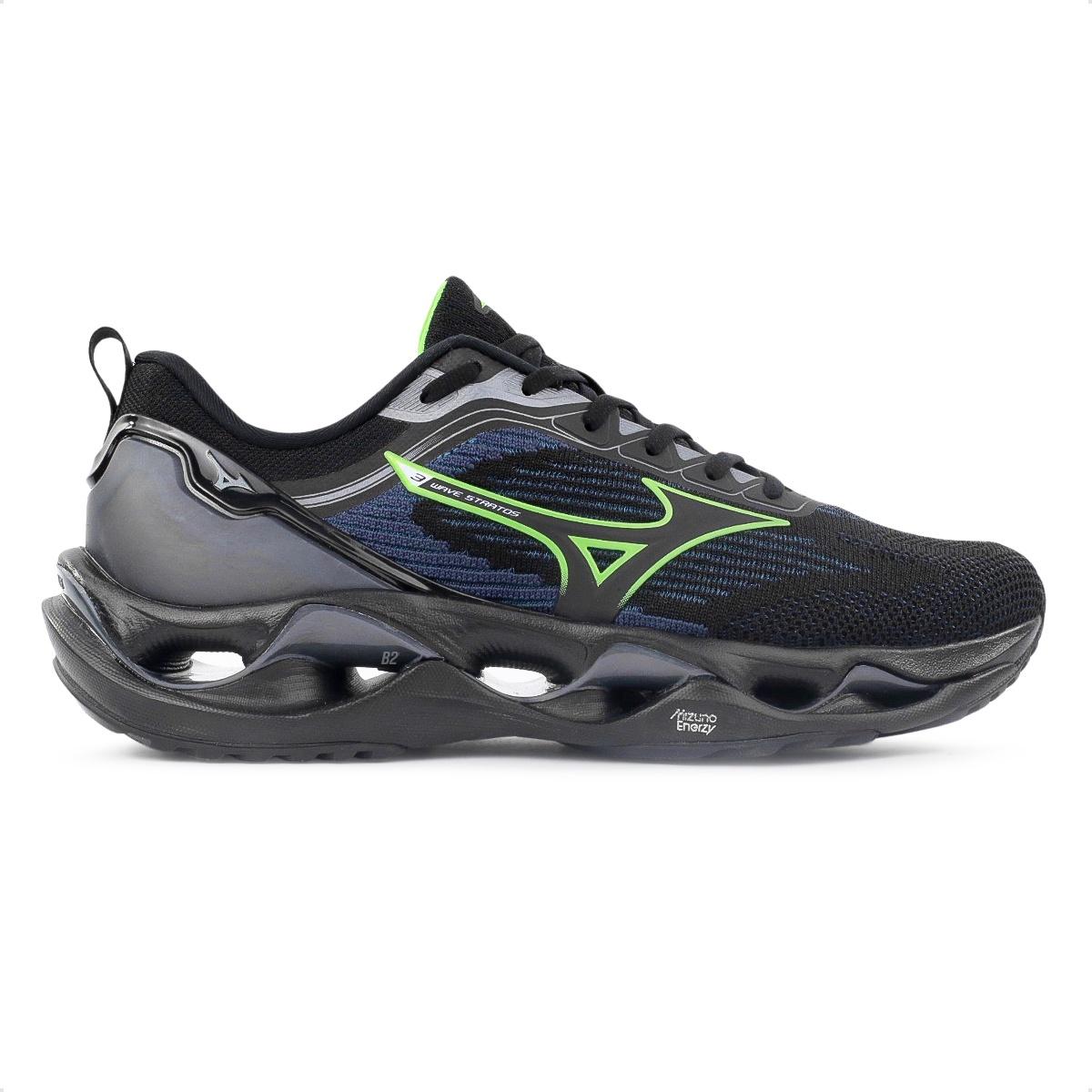 Tênis Mizuno Wave Stratos 3 Masculino Preto / Verde